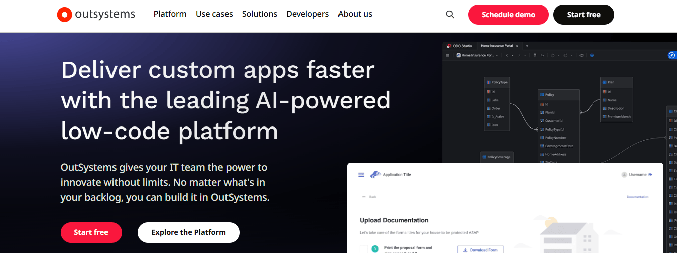 OutSystems is a leader in enterprise-grade low-code development, with advanced AI features to accelerate development cycles. Features include: