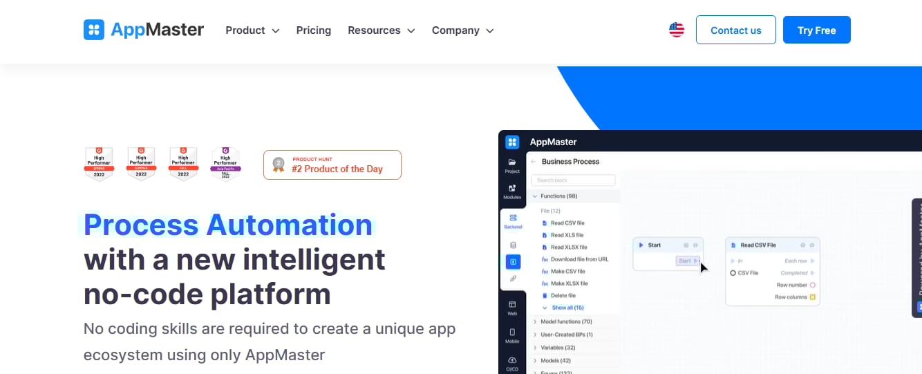 AppMaster emphasizes visual development with AI-powered backend generation. This tool is handy for quickly creating data-driven applications.
