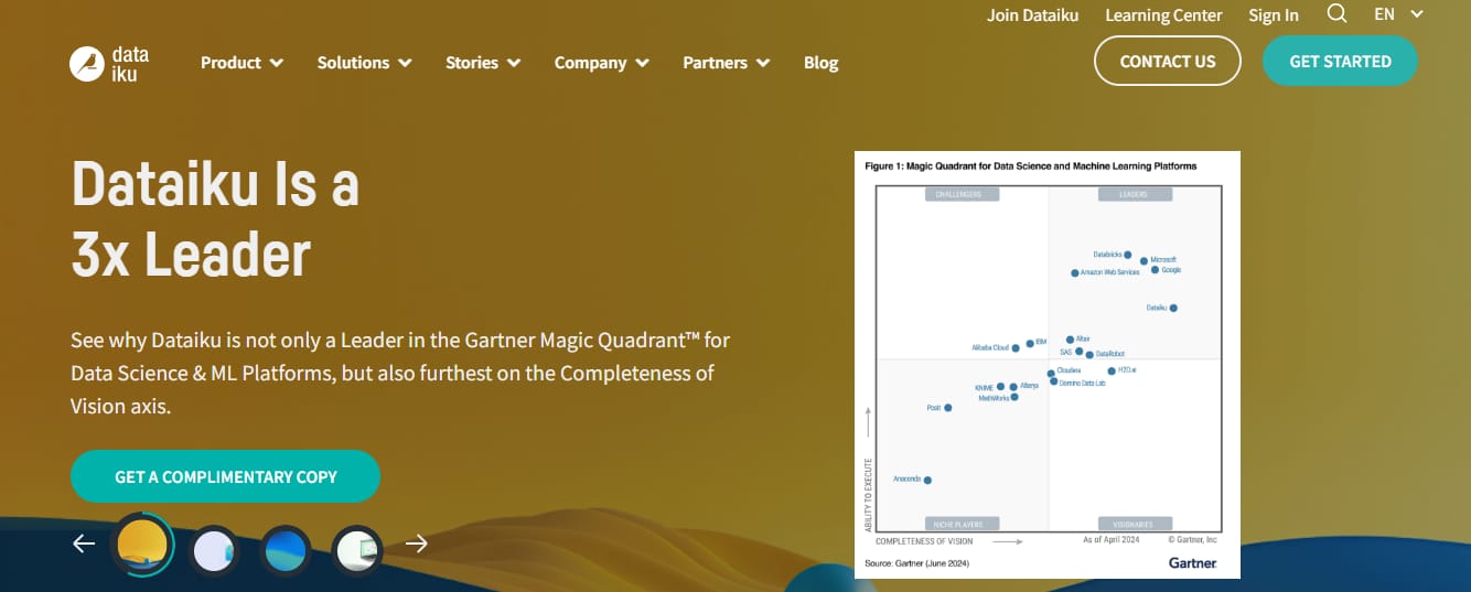 Dataiku is a comprehensive AI analytics platform that empowers users to build, deploy, and manage AI solutions. It caters to both technical and non-technical users. Strengths include: