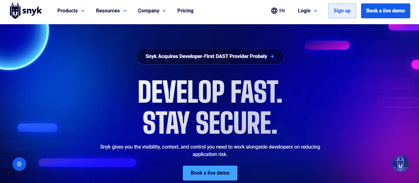 Comprehensive security solutions: Snyk scans your code, dependencies, Docker containers, and infrastructure as code (IaC) so you have full coverage.