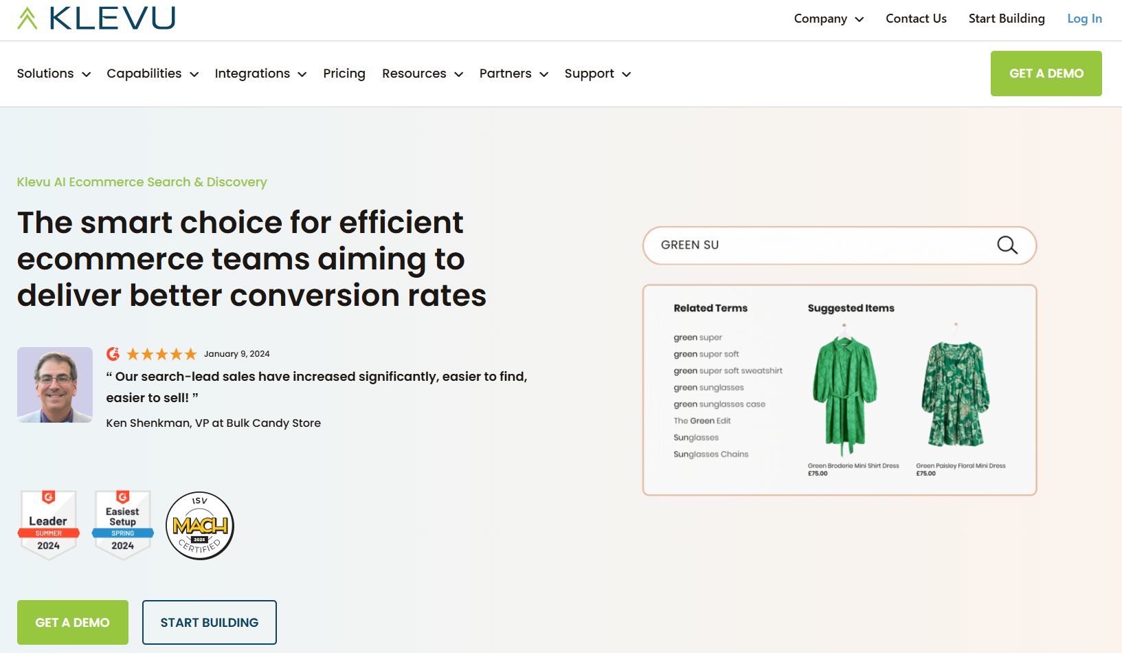 Klevu is a personalization and conversion rate optimization solution for eCommerce businesses. Like DynamicYield, Klevu is mostly focused on website personalization and optimization with a few key AI-powered tools like: