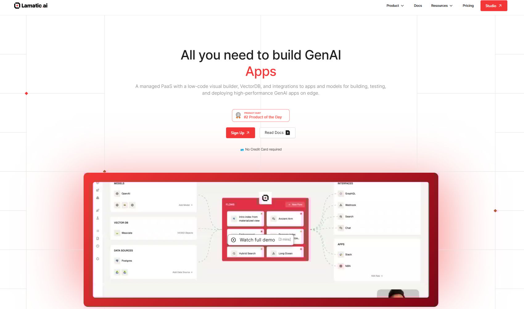 Start building GenAI apps for free today with our managed generative AI tech stack.