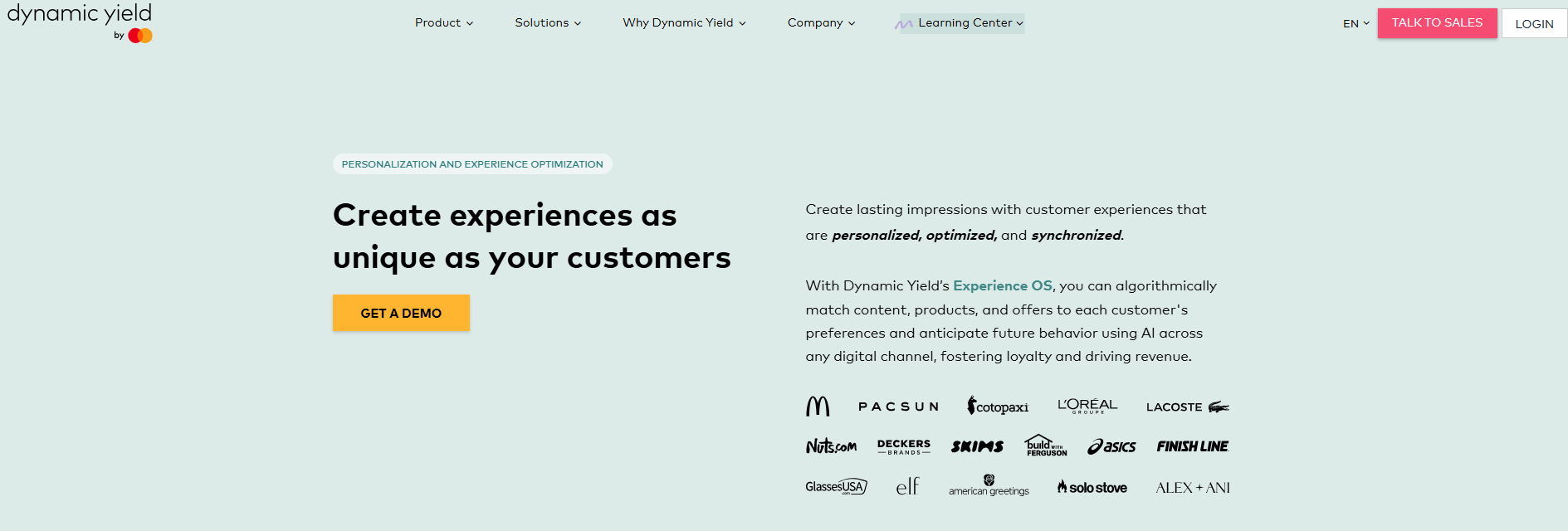 2. Dynamic Yield: AI-powered Personalization Across All Touchpoints