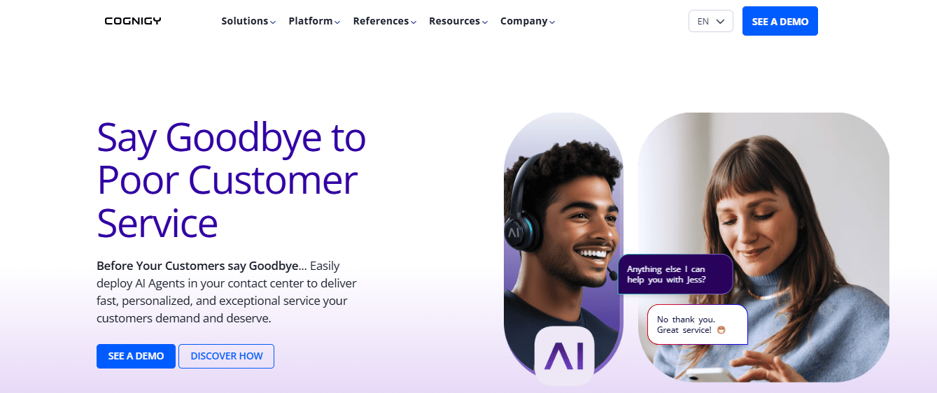 Cognigy.AI combines user-friendly design tools with powerful automation capabilities. It simplifies the creation of conversational AI for businesses of all sizes. Even teams without technical expertise can build and deploy AI assistants using Cognigy.AI’s intuitive drag-and-drop builder.