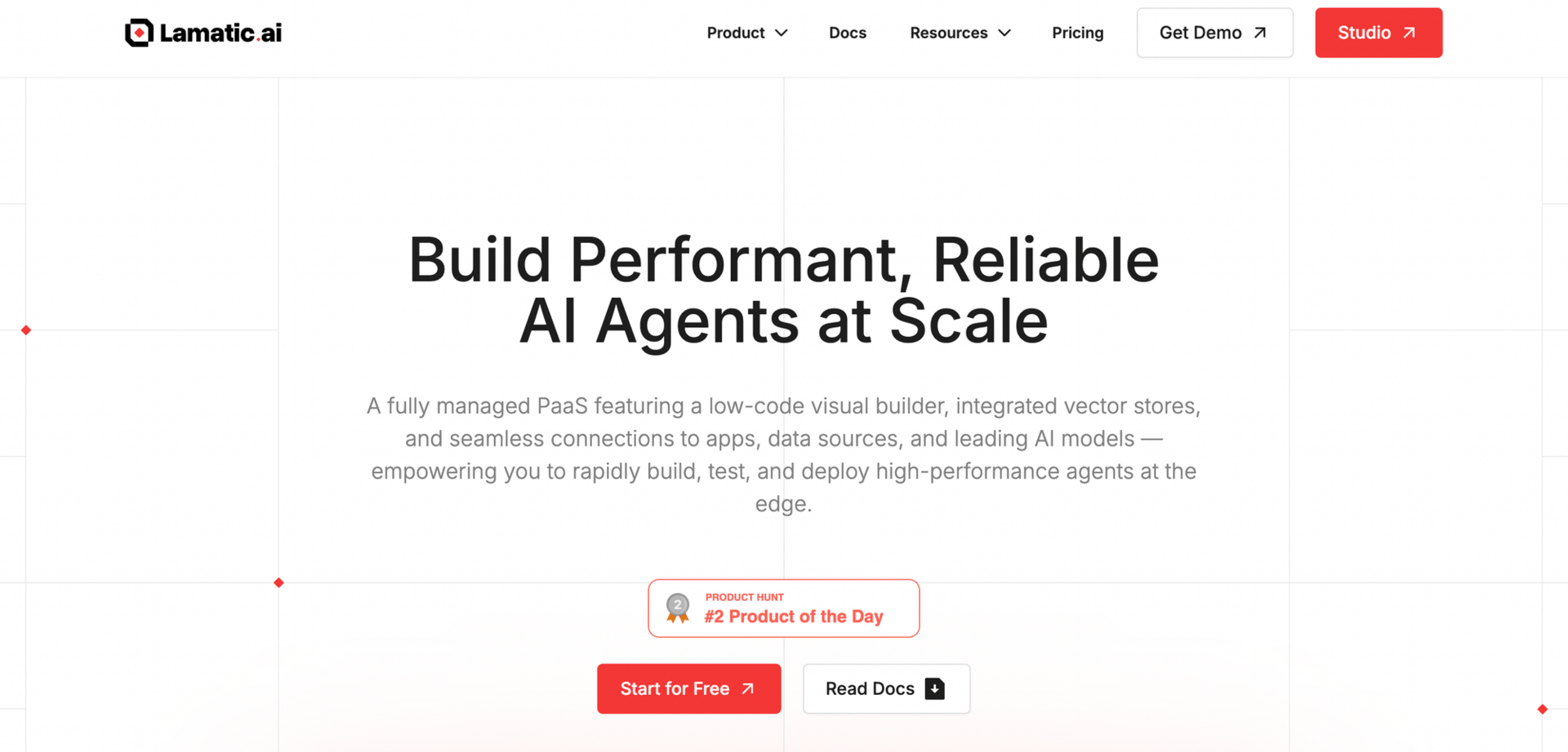 Low-code development tools help reduce the barriers to entry for implementing new technologies like generative AI. Lamatic’s low-code agent builder lets users quickly create, customize, and deploy generative AI applications without extensive coding knowledge. This helps teams get up to speed with generative AI faster and reduces the risk of tech debt.