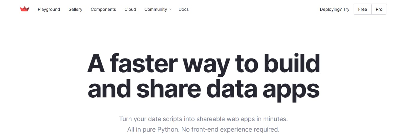 Create interactive web apps using only Python; no HTML or JavaScript is needed