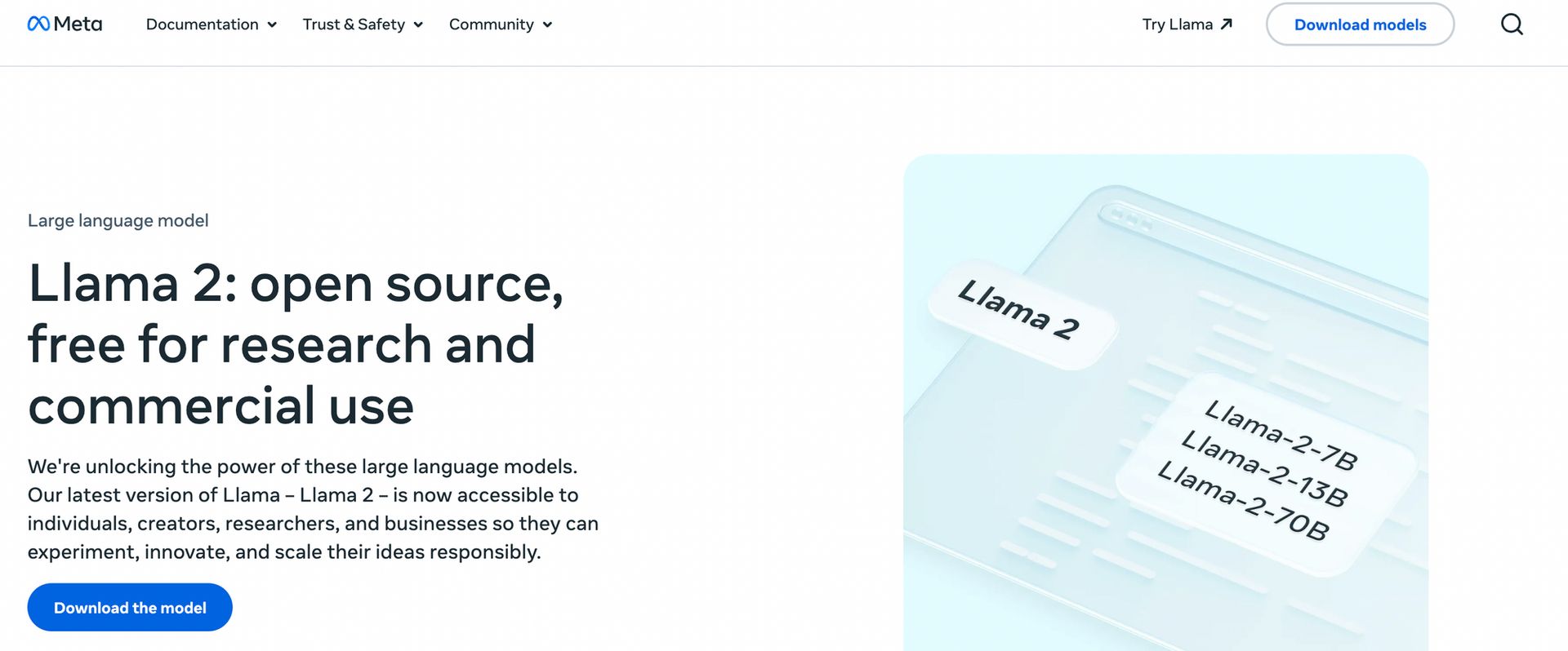 In February, Meta released the precursor of Llama 2, LLaMA, as source-available with a non-commercial license. It soon leaked and spawned several fine-tuned models built on top of it, including Alpaca from Stanford University and Vicuna, developed by a team from the:
