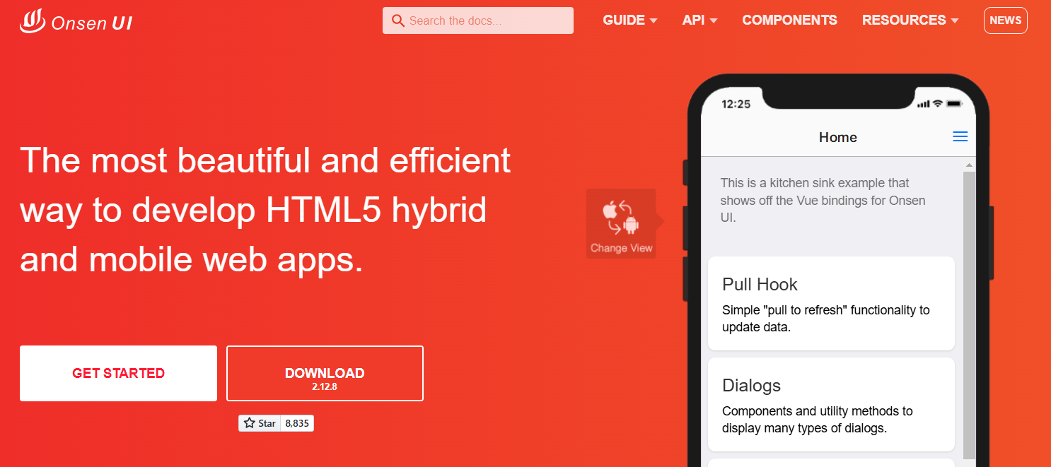 Onsen UI is an open-source framework that makes it easy to develop native-feeling Progressive Web Apps (PWAs) and hybrid apps. The essential archive is written in pure JavaScript and is context-sceptical, meaning you can use it with your favorite framework and its tools. The mechanisms are optionally auto-styled based on the platform, which makes it possible to support both iOS and Android with the same source code.