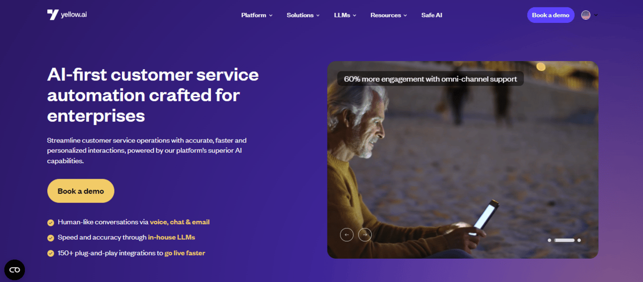Yellow.ai stands out for its ability to seamlessly integrate AI-powered chatbots and voice bots across multiple channels (voice, chat, social media, email), offering businesses a truly omnichannel customer engagement experience.