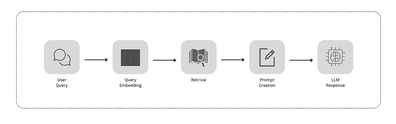 Prompt Construction: The retrieved text is combined with the original user query to form an augmented prompt.